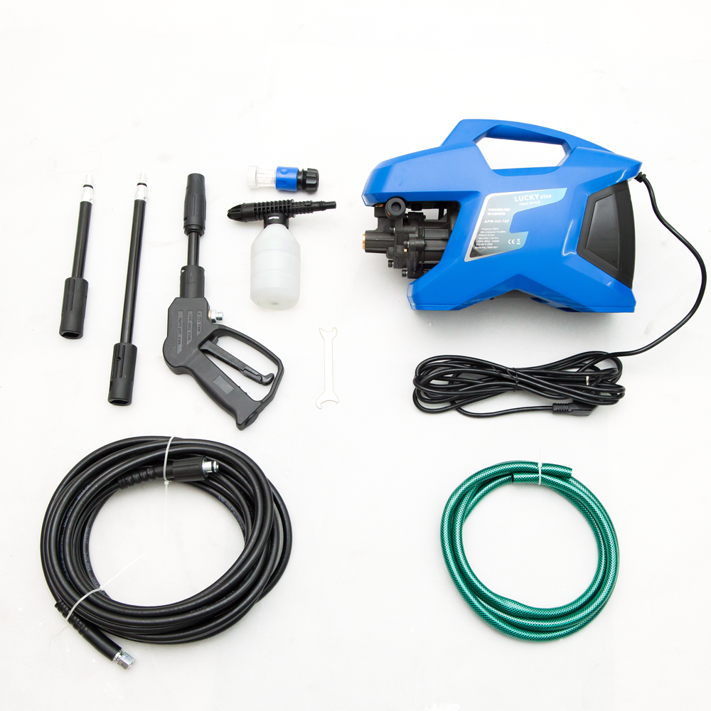 Máy rửa xe Lucky Star APW-HO-70P có đầy đủ các phụ kiện được đồng bộ đi theo máy gồm: súng điều chỉnh áp lực 3 nấc, dây rửa 10m, dây hồi và bình tạo bọt nhỏ rất thuận tiện khi sử dụng. Dây rửa dài giúp người sử dụng dễ dàng di chuyển, bình tạo bọt nhỏ giúp người dùng phủ đều dung dịch rửa lên toàn bộ thân xe tiết kiệm thời gian.